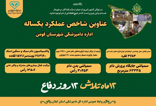 اطلاع‌نگاشت عناوین شاخص عملکرد یکساله اداره دامپزشکی شهرستان فومن