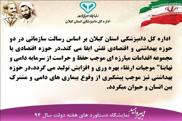 دستاوردهای دامپزشکی گیلان(هفته دولت سال 94) 1398/06/06 - 13:11 - تعداد بازدید: 54 - کد خبر : 262519 - گروه خبری : عکس - تعداد نظرات : 0
